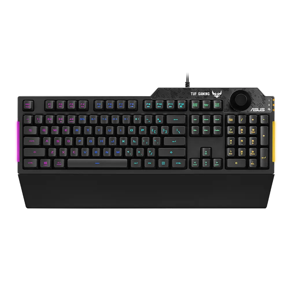 Med en dedikerad volymknapp i det övre högra hörnet gör TUF Gaming K1 det enkelt att kontrollera ljudet i dina spel. Du kan enkelt och intuitivt sträcka ut handen och vrida på ratten samtidigt som du håller ögonen på vad som händer på skärmen.