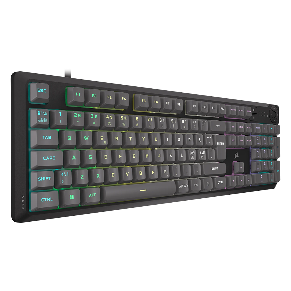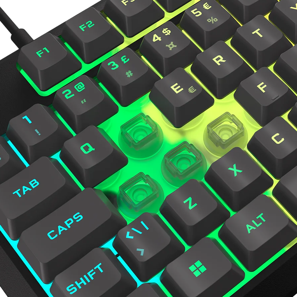 K55 CORE är motståndskraftigt mot vätskespill på upp till 300 ml, så att du alltid är redo att fortsätta spela, även om det värsta skulle hända.