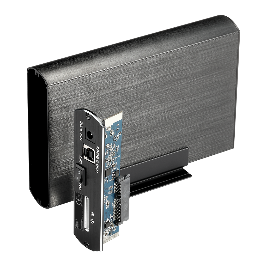 Detta aluminiumkabinett för SATA är utformat för 3,5" hårddiskar och har stöd för SATA 6 Gbit/s med överföringshastigheter via USB 3.1 på upp till 5 Gbit/s. Enheten fungerar även med äldre USB-standarder, vilket ger dig smidig tillgång till data på dina gamla hårddiskar eller möjligheten att återanvända dem som externa lagringslösningar.Kabinettet har en praktisk strömbrytare, egen 12V-strömförsörjning och klarar hårddiskar på upp till 8 TB.